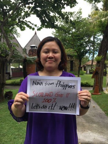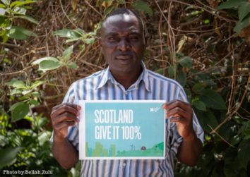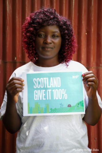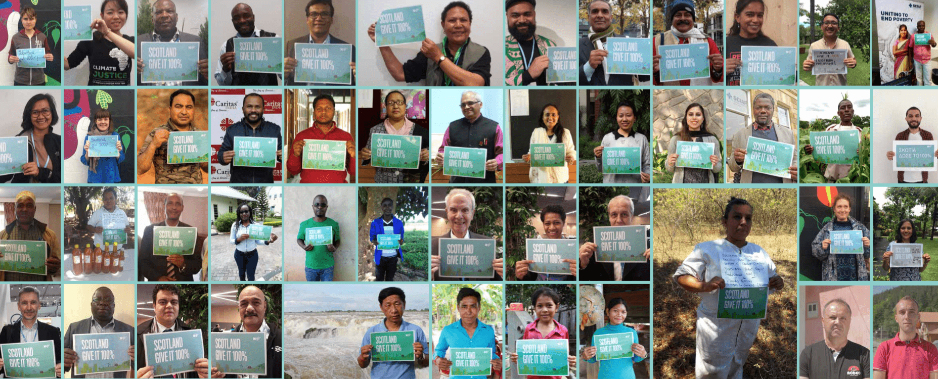 100 individuals, including many directly impacted by climate change and those working to help tackle climate change, have taken photos with signs urging Scotland to “Give it 100%” in our efforts to cut emissions. Contributions include impassioned pleas from farmers in Africa, vulnerable communities in Asia, indigenous Arctic groups and Pacific Islanders.